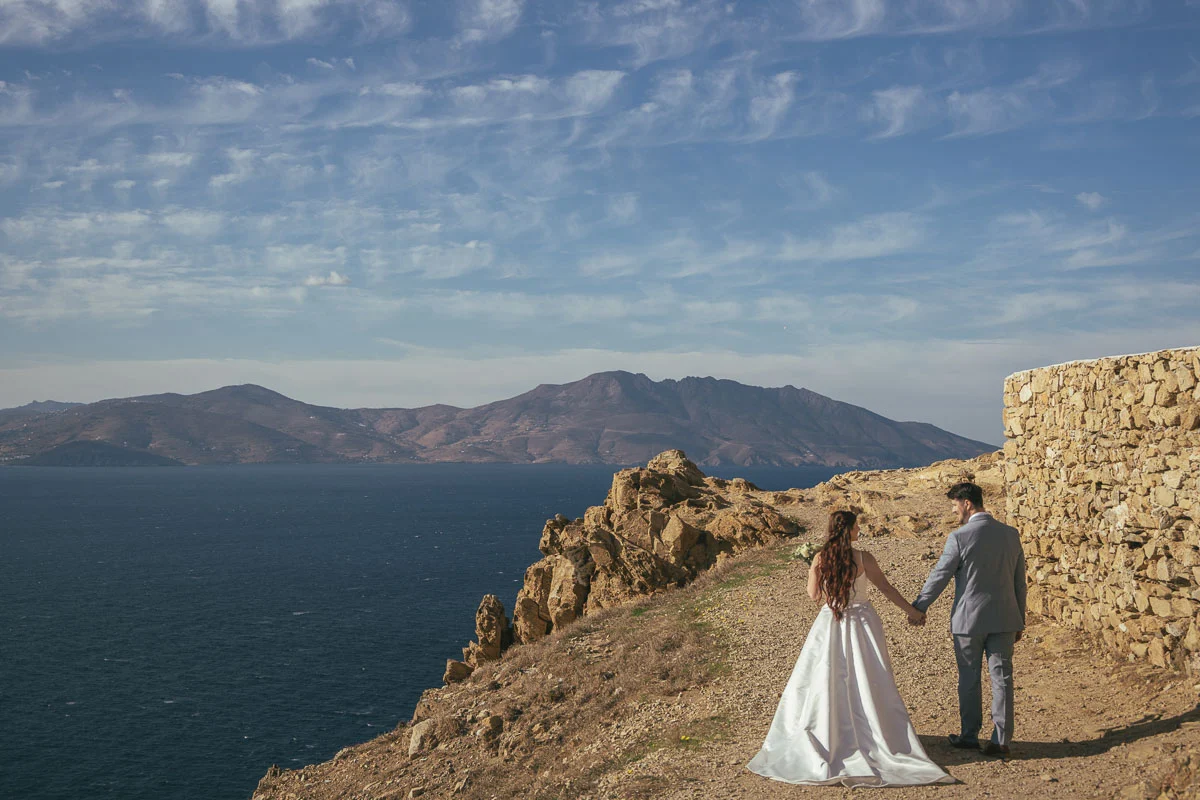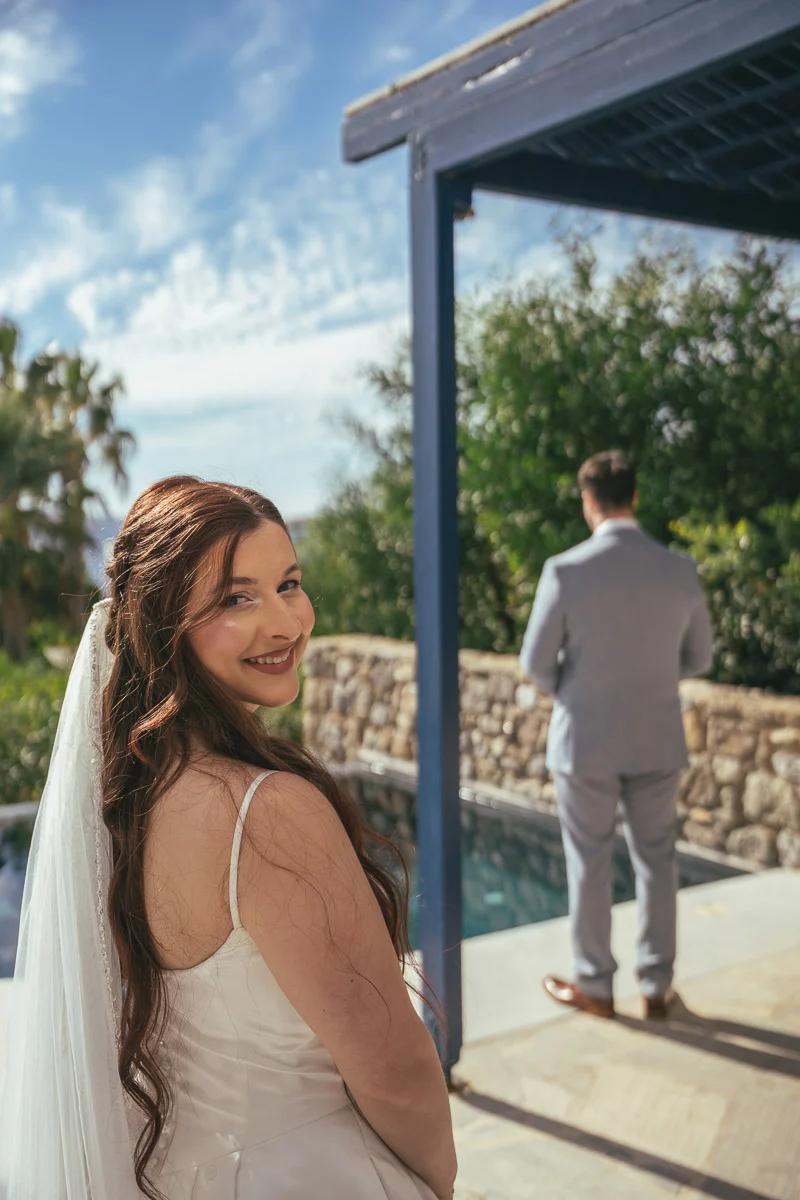 When Devin and Daniel decided to elope, they knew one thing for certain — it had to be just the two of them, somewhere extraordinary. They chose Mykonos, and on a warm October afternoon, the island delivered everything they had dreamed of. From a quiet first look at a sun-drenched villa to a stroll past the iconic windmills, their day unfolded with the effortless intimacy that only a true elopement in Mykonos can offer.