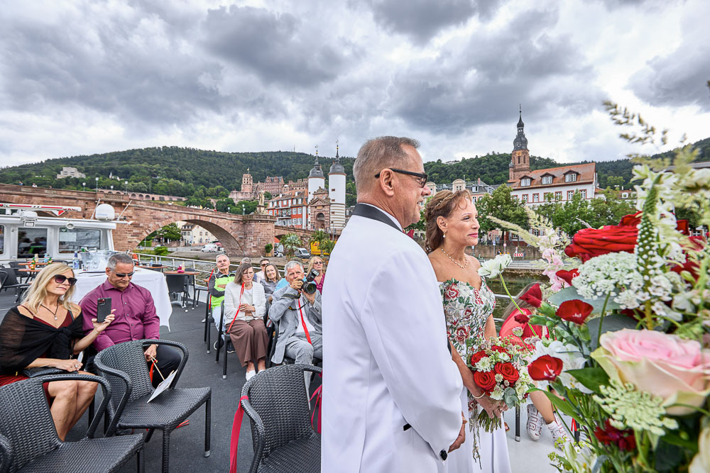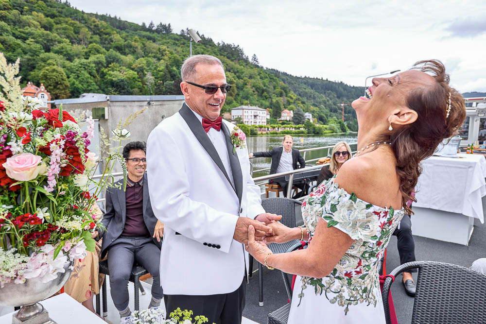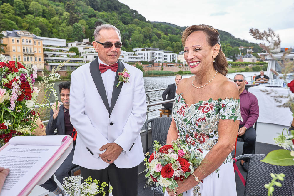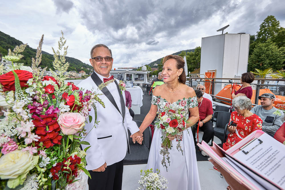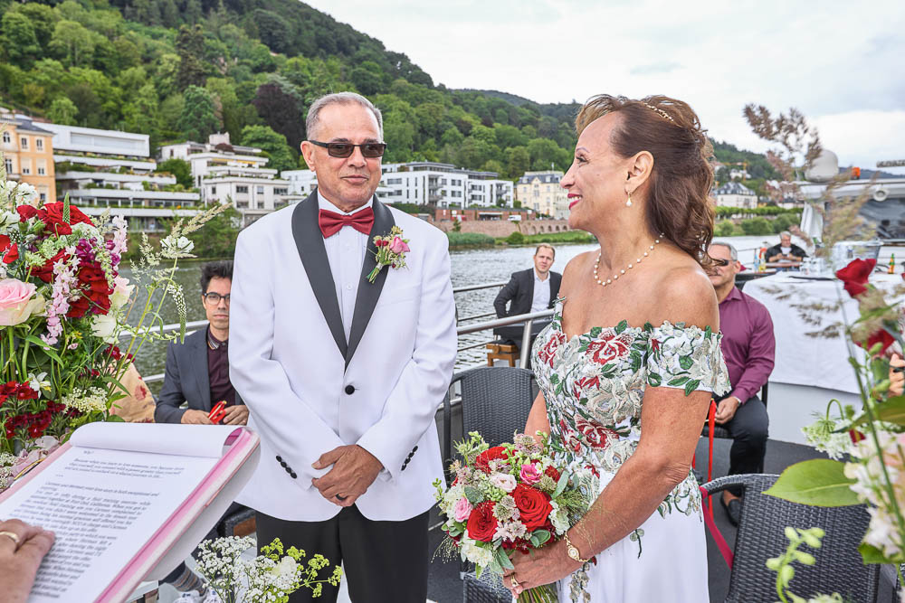 A wedding vows renewal on the Neckar in Romantic Heidelberg, Germany