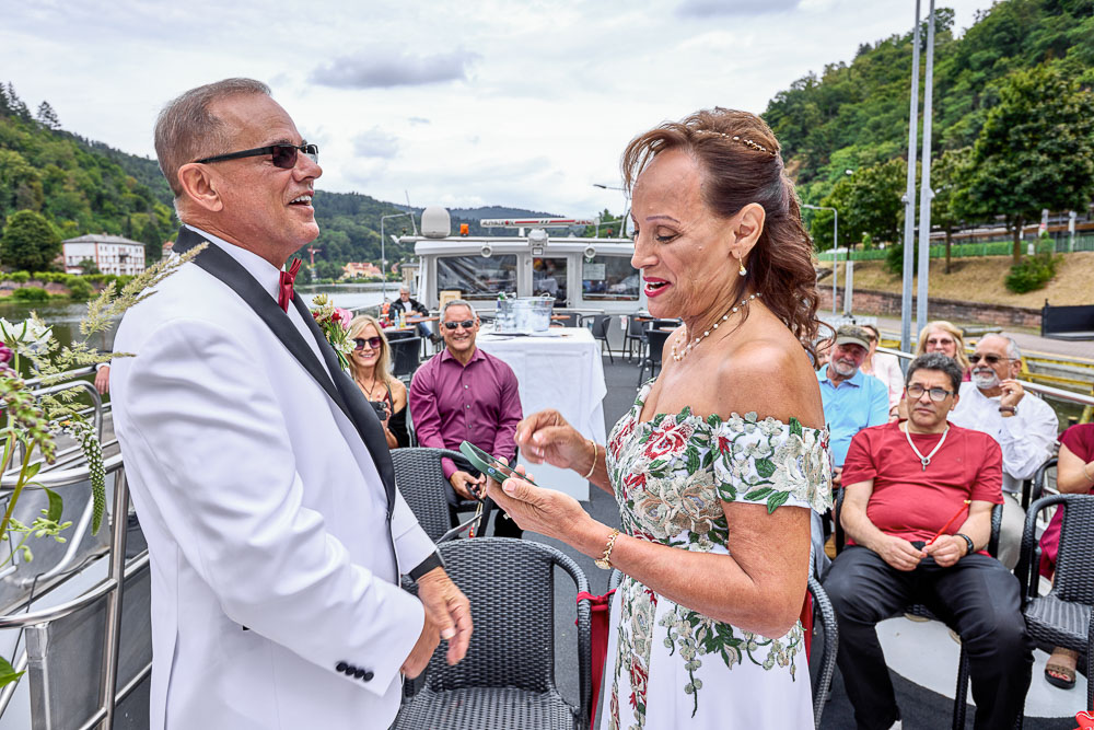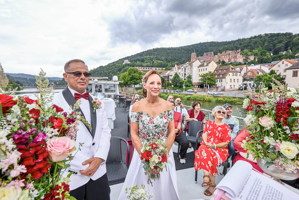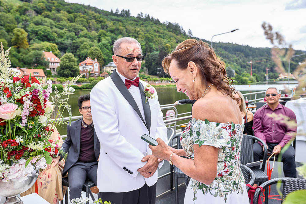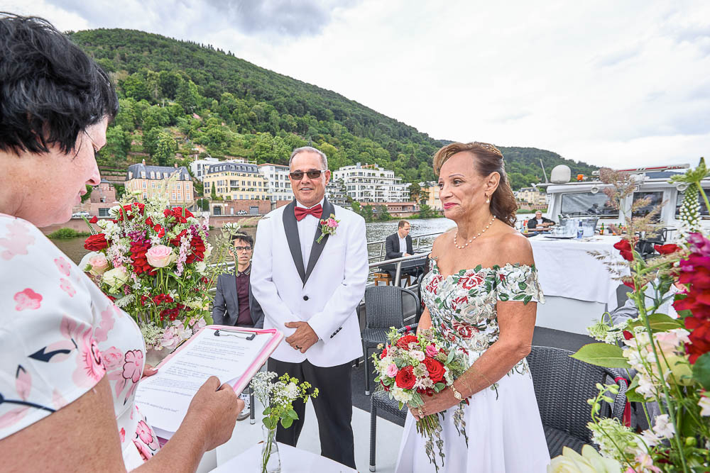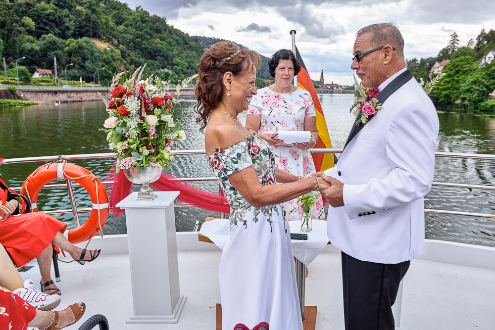 A wedding vows renewal on the Neckar in Romantic Heidelberg, Germany